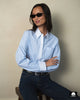 The Cropped Button Front Shirt is styled with the 90'S Straight Leg Jean.