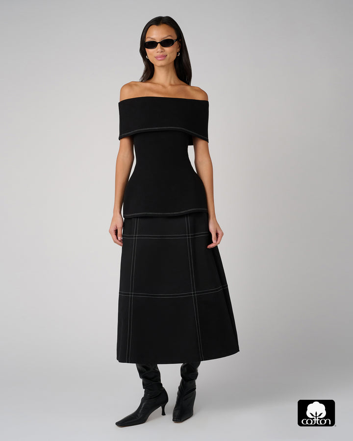 A-Line Contrast Stitch Skirt