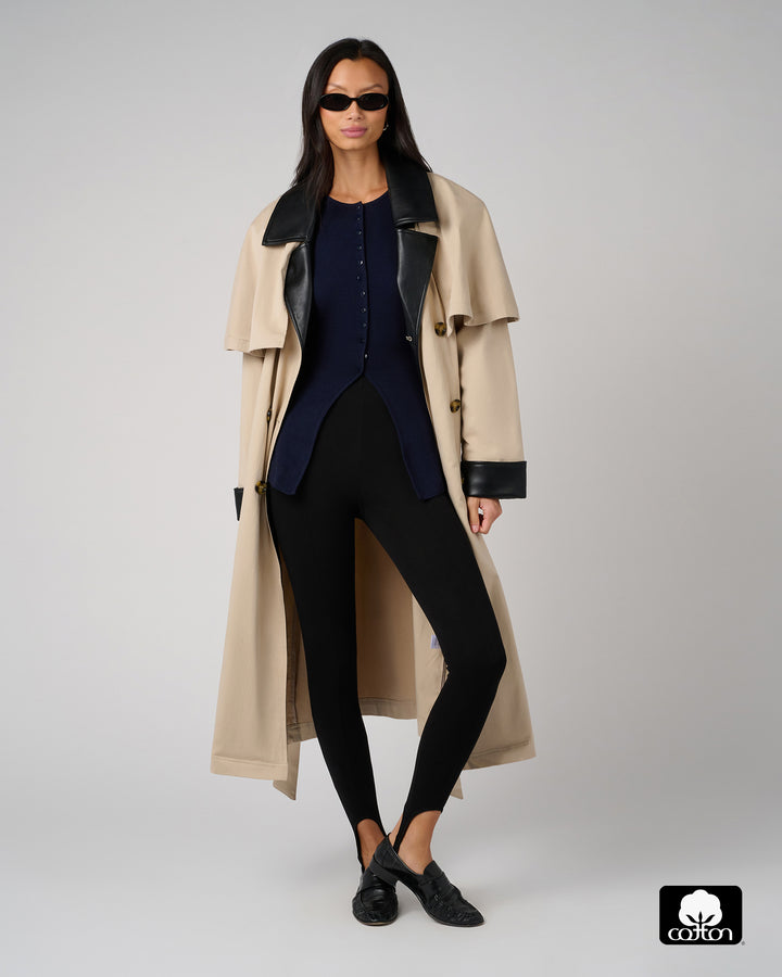 Vegan Leather Trim Trench Coat
